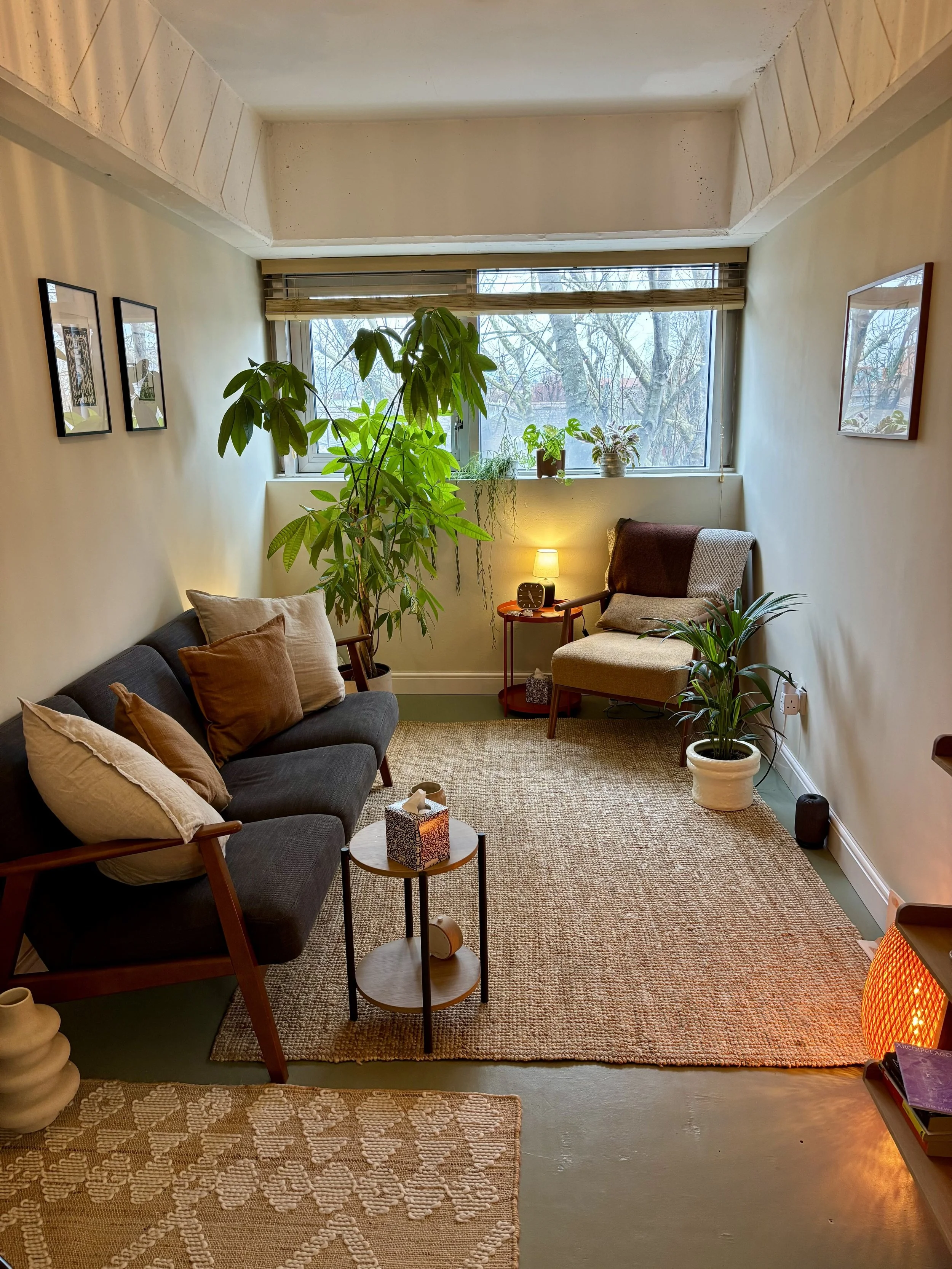 We offer a welcoming and comfortable room for therapists within Peckham Levels for talking therapy.